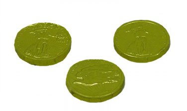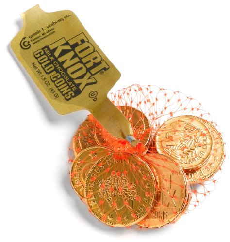 8"-diameter plastic pot filled with 144 gold foil wrapped chocolate coins.