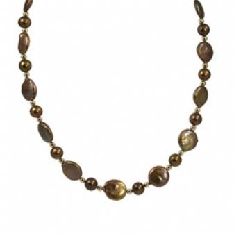 14K 12-13mm coin dyed chocolate freshwater cultured pearl necklace, 18" Overview